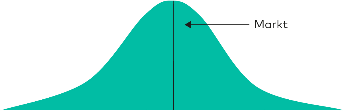 Die vermögensgewichteten Renditen aller Marktteilnehmer ergeben eine Glockenkurve, die sich um die Marktrendite verteilt