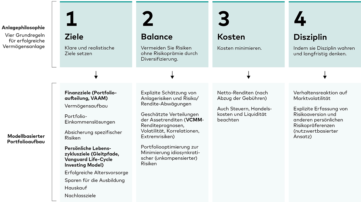 Die Prozesse wurden in eigenen Modellen wie dem Vanguard Capital Markets Model und dem Vanguard Asset Allocation Model „kodifiziert“.