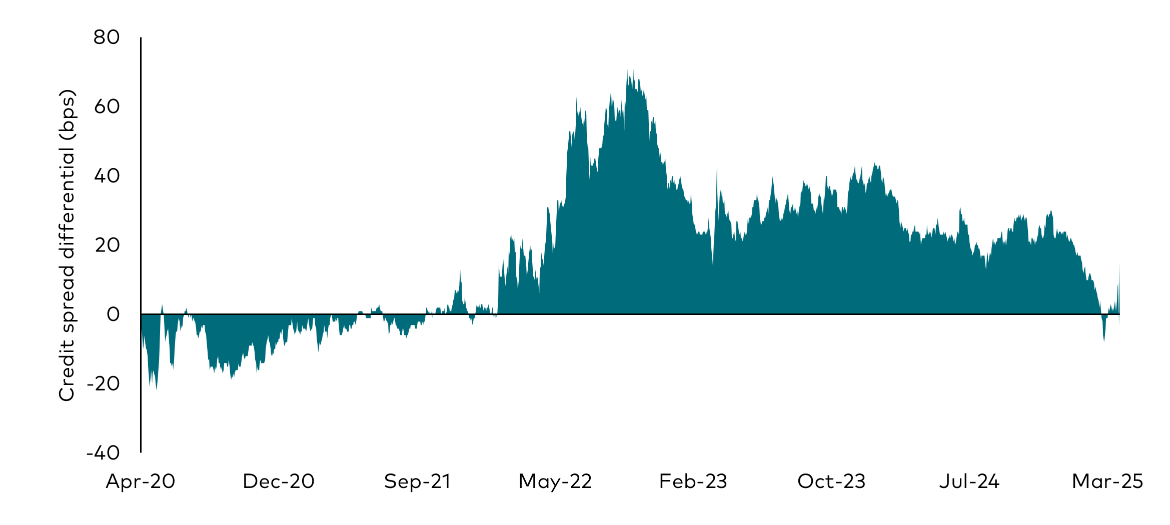 Credit spreads globally moved gradually wider in the final weeks of the first quarter, before spiking in the days following the 2 April tariff announcements, as markets priced in a justifiably higher risk premium across sectors.