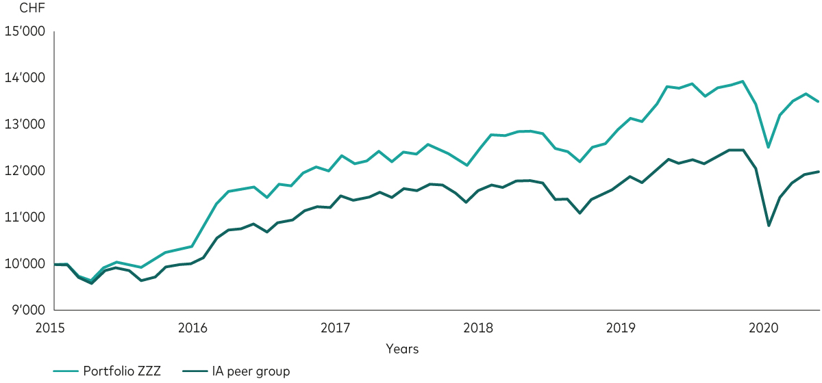 As we see below, the adviser may feel very positive about Portfolio ZZZ as it has outperformed the relevant peer group for a number of years. However, we all know that past performance is not an indicator of future returns, and in this case it does pay to dig a little deeper.