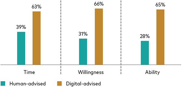 FIGURE 9. Digital-advised clients report higher levels of time, willingness and ability to manage their own investments